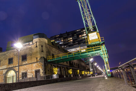LONDON, UK - JUNE 11, 2015: Docklands harbour crane