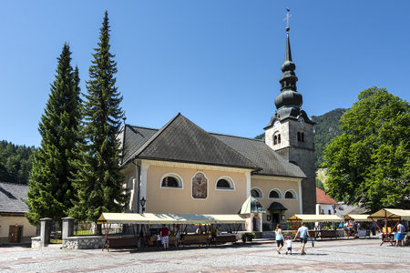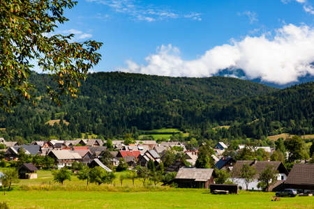 Kranjska Gora town in Slovenia at summer with beautiful nature and mountains in the background