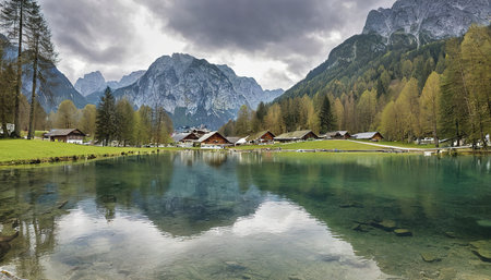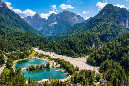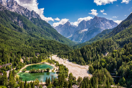 Lake and mountains near Kranjska Gora village in Triglav national park, Slovenia