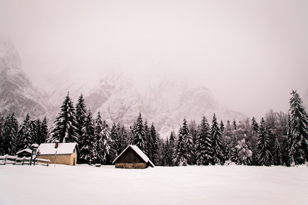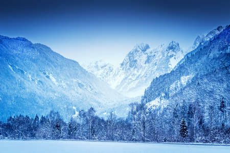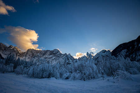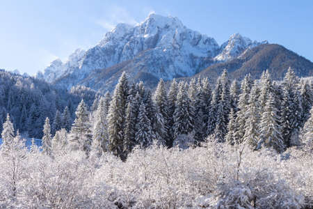 Winter morning in the mountains. Triglav National Park. Julian Alps in Slovenia, Europe