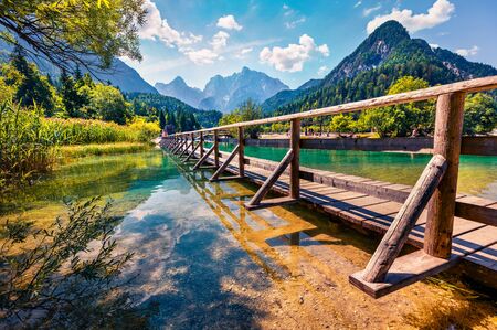 Great nature scenery in Slovenian Alps. Incredible summer landscape on Jasna lake. Triglav national park. Kranjska Gora, Slovenia. Mountain lake Jasna in Krajsnka Gora, Slovenia.