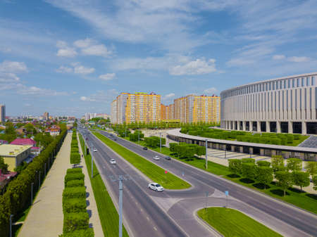 Krasnodar, Russia - may 2019. Aerial city from above. Drones Eye View