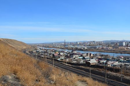 View of the city of Khabarovsk from the Spaso-Preobrazhensky Cathedral. Urban landscape.