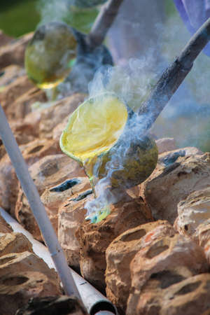 Image of ordination ceremony in buddhism, ceremonial thread