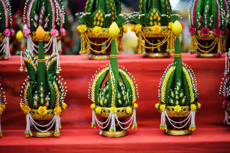 Krathong object made by banana leaf and ornamental plants on Loy Krathong day in Thailand
