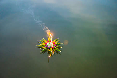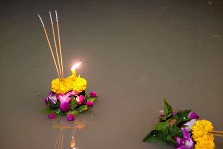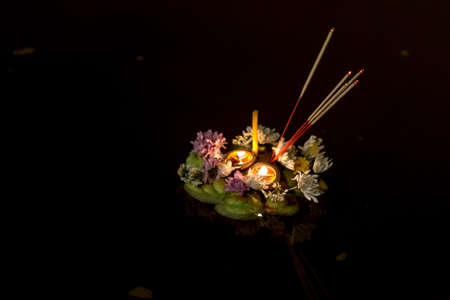 Thailand, Loy Krathong festival, The flowers and candle float on water to worship to the god of the river.