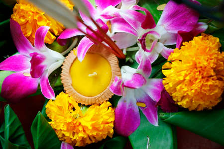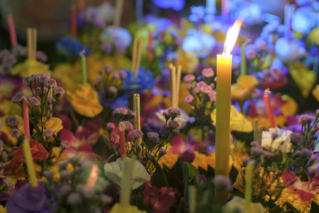 Close up of candle. Loy Krathong Festival celebrated in Thailand.