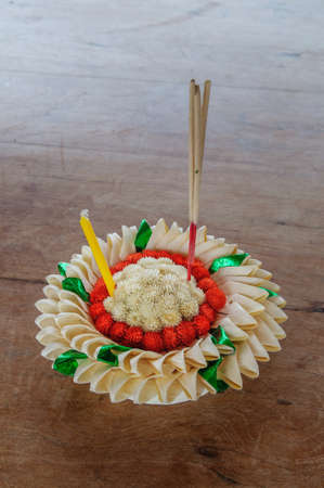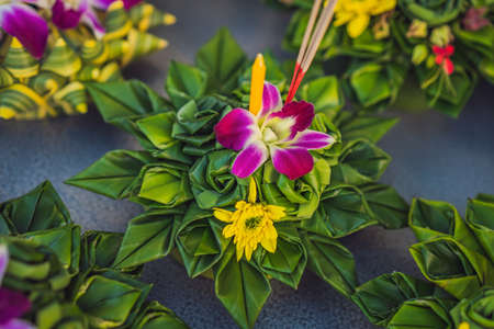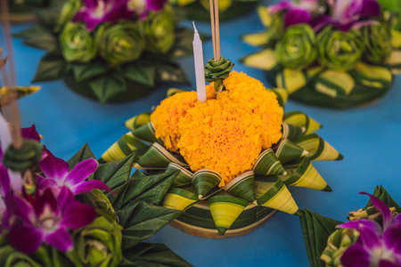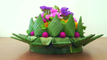 Krathong made from leaves and flowers for Thai candle festival Loy Krathong