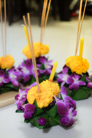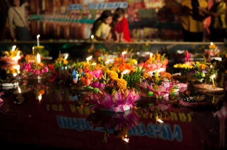 Loy Krathong festival, People buy flowers and candle to light and float on water to celebrate the Loy Krathong festival in Thailand
