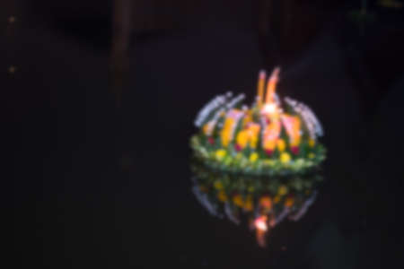 Blur background of Krathong, People buy flowers and candle to light and float on water to celebrate the Loy Krathong festival in Thailand