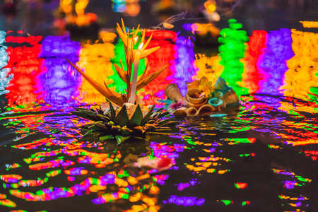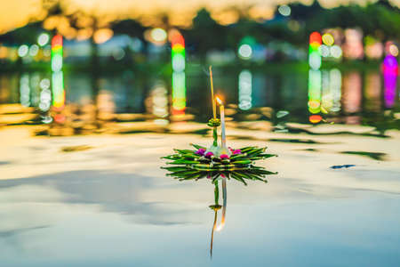 Loy Krathong festival float on water to celebrate the Loy Krathong festival in Thailand