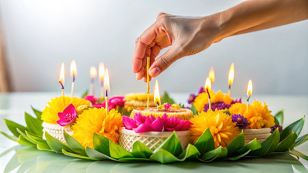 Floral Candle Decoration. Concept of celebration, festive, Diwali, and aromatherapy.