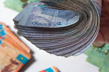 Paper banknotes tenge KZT. Tenge is the national currency of Kazakhstan. bank of Kazakhstan