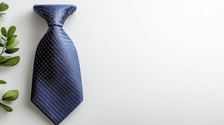 A classic blue tie with subtle patterned texture, displayed on a light background with leaf accents. Ideal for Father Day celebrations or as a gift for men, symbolizing style and sophistication