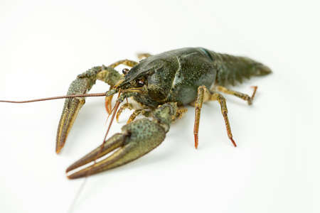 alive crayfish isolated on white background, live crayfish closeup, fresh crayfish. Beer snacks, river crayfish