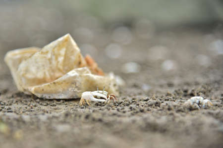 Beautiful small sand bubbler crab (presumably Dotilla fenestrata) on the beach of Toliara, Madagascar
