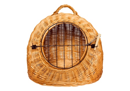 Empty wicker basket. Basket in bathroom. Vintage wicker basket