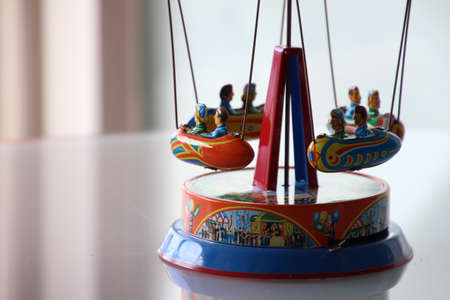 Wooden merry-go-round music box with vintage filter