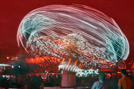 Colorful Light Trail From A Fast Carrousel At A Fun Park In The NIght