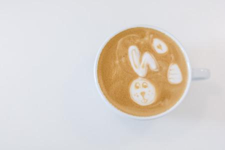 Cafe latte easter bunny latte art on white table