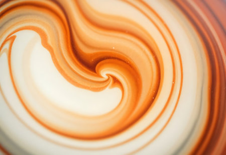 swirls of milk and coffee mixing for a latte art masterpiece, created with generative ai