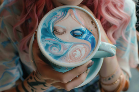 Beautiful latte art in girlish style, featuring various coffee drinks with milk