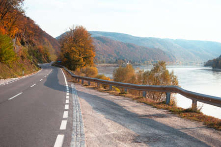 Mountain road - road through the vineyards at sunset. Wachau Valley