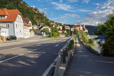 autumn view of small austrian village Weissenkirchen in der Wachau on a Danube river bank , district of Krems-Land, Wachau Valley, Austria