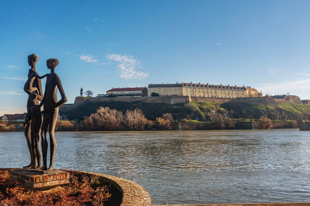 Monument to the victims of the Shoah and Petrovaradin Fortress in Novi Sad, Serbia