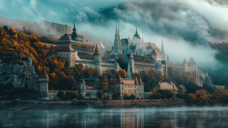 Passau, Germany - July 21, 2023: Panoramic view castle Veste Niederhaus Fortress on river Danube. Antique fortress in Passau, Lower Bavaria, Germany