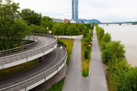Treppelweg, long pathway alongside Danube River south bank, Vienna, Austria