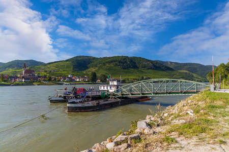 Spitz village with ships on Danube river in Wachau valley (UNESCO) during spring time, Austria