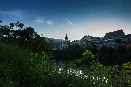 Cityscape of Cesky Krumlov at sunset, Czech Republic