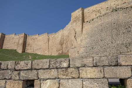 Derbent. Russia. April 09, 2021. Republic of Dagestan. The external architecture of the walls of the ancient pre-Arab fortress Naryn-Kala, founded in the VI century AD.