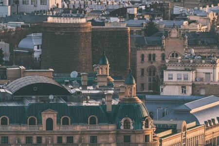 Aerial view of Griboyedov canal, roofs of historic houses in the city center. St. Petersburg, Russia.