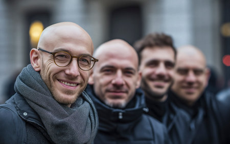 A vertical, wide-angle cinematic shot capturing a diverse crowd gathered outdoors on Groundhog Day,