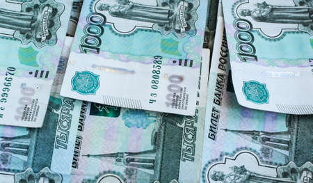 Paper banknotes Russian Rubles. Russian money rubles face. Closeup of Russian rubles. The concept of Finance and economy, closeup