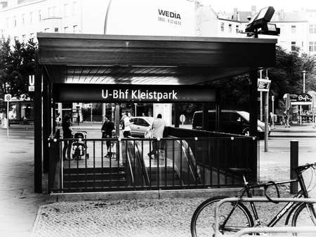 BERLIN, GERMANY - JUNE 20, 2017: Entrance To Metro Station Kleistpark In Berlin, Black And White