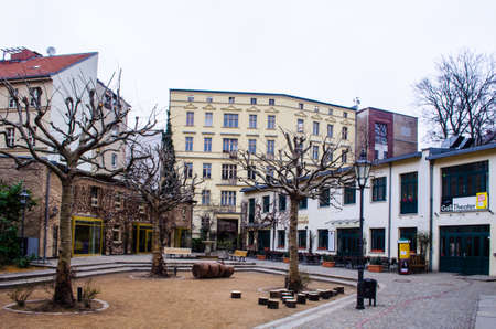 BERLIN, GERMANY, MARCH 12, 2015: complex of nine courtyards hidden among tall buildings was transformed into tranquil zone with shops, restaurants and cinema. it is called Hackesche Hofe.