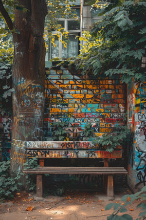 urban art exhibition, a concrete wall adorned with graffiti tags and spray paint art, creating the backdrop for a rebellious summer street art festival