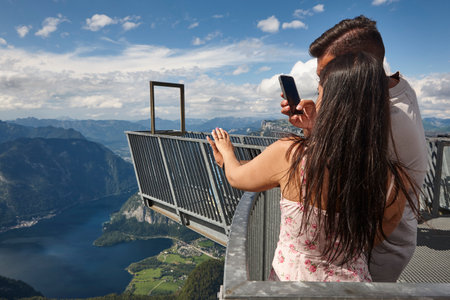 Obertraun, Salzkammergut, Austria – July 9, 2016. Five Fingers viewing platform over Hallstatter See lake in Austria.