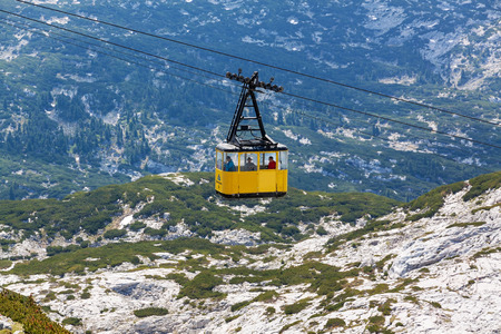 Obertraun, Austria - June 27, 2014: Ropeway gondola at Dachstein mountains, a famous tourist destination of Salzburger Land for hikers.