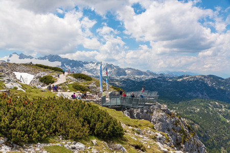 Obertraun, Austria - June 27, 2014: On top of Dachstein mountains, a famous tourist destination of Salzburger Land for hikers.