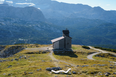 Heilbronn Chapel is a beautiful small Church located near the viewing platform 5 fingers in Dachstein Mountains, Upper Austria, Austria