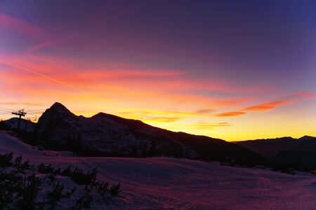 Sunset in the mountains between Slovenia and Italy in a freezing winter day
