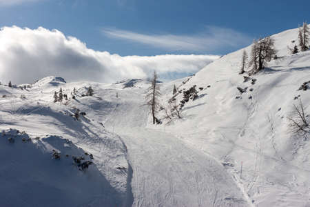 Dachstein-Krippenstein site is the real paradise for winter sports, it boasts many ski runs of varying difficulty and breathtaking Alpine landscapes, Salzkammergut, Austria.