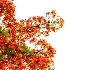 Flame Tree, Royal Poinciana, Flamboyant-red blooming beautiful nature and season on white background.