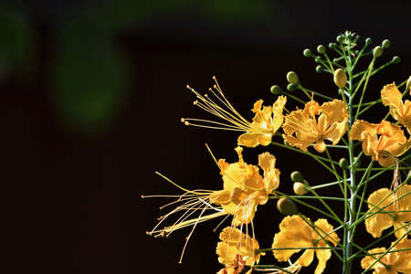 Caesalpinia flower in a sunny day. National flower of Caribbean Barbados island
