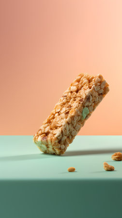 A visually appealing granola bar featuring a crunchy peanut topping, perfect for showcasing healthy snack options and enhancing food photography. Ideal for wellness promotions.