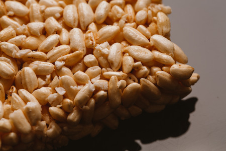 puffed rice slice on a dark background.